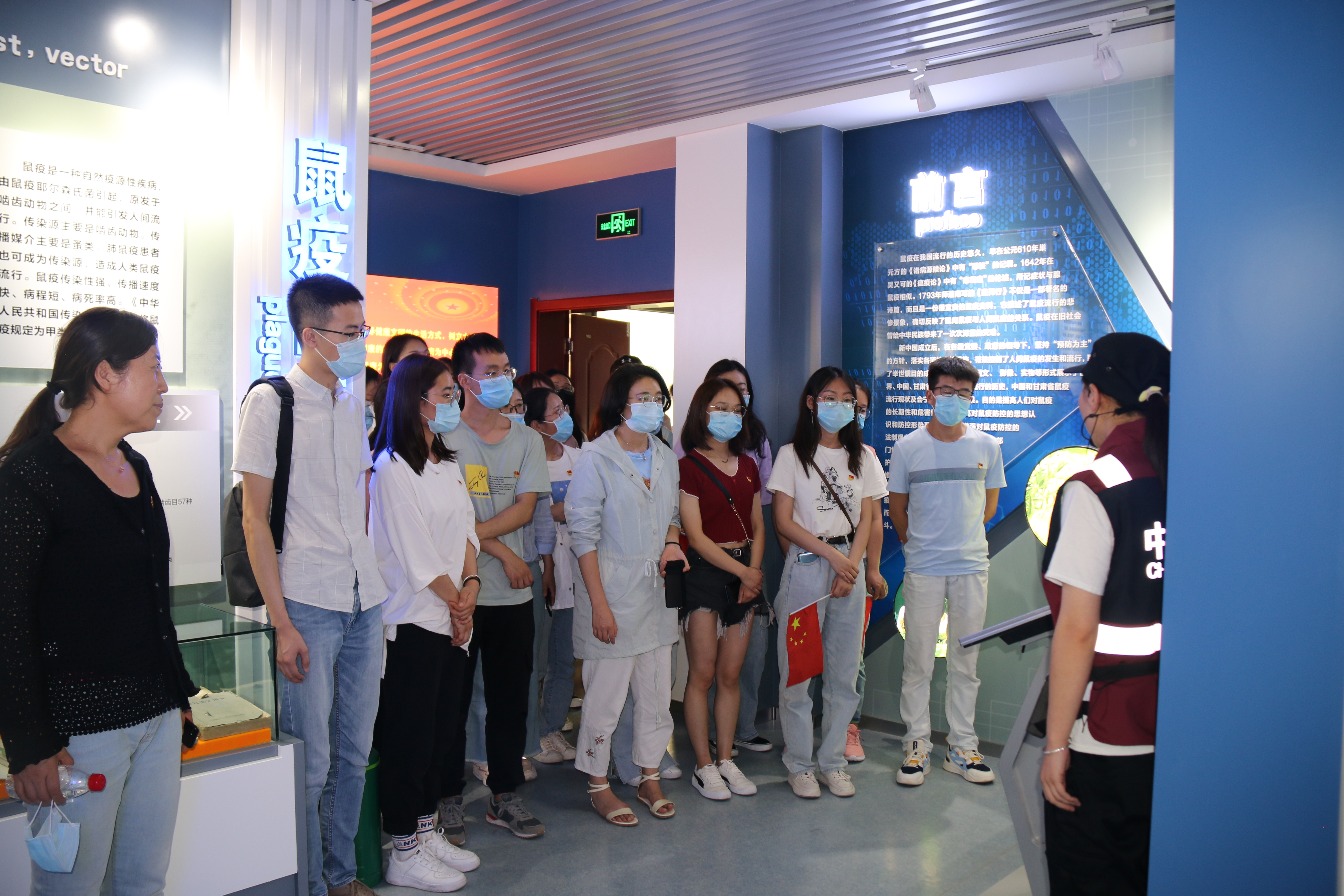 会宁县六零一站,担负着甘宁黄土高原阿拉善鼠鼠疫疫源地会宁境内鼠疫监测防治任务。在讲解员的引导下参观了六零一站的标本室、档案室、应急物资储备室。看到监测人员的个人应急装备足足有四十多斤,大家感受到他们扛起的不仅是物资必需品,更是对社会和人民的责任。