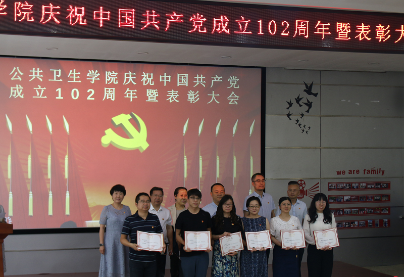学院党委副书记、副院长刘文铎宣读《关于表彰公共卫生学院优秀共产党员、优秀党务工作者和先进基层党组织的决定》。学院党委授予王仲阁等18名同志“优秀共产党员”称号,授予王龙等6名同志“优秀党务工作者”称号,授予社会医学与卫生事业管理所教工党支部等3个党支部“先进基层党组织”称号。