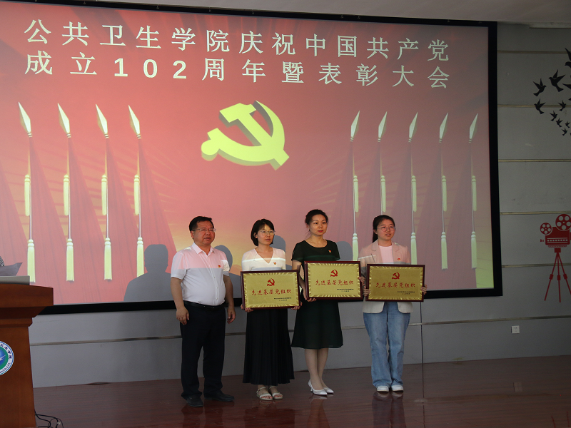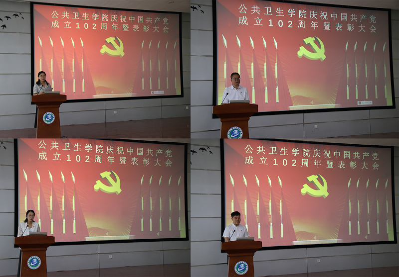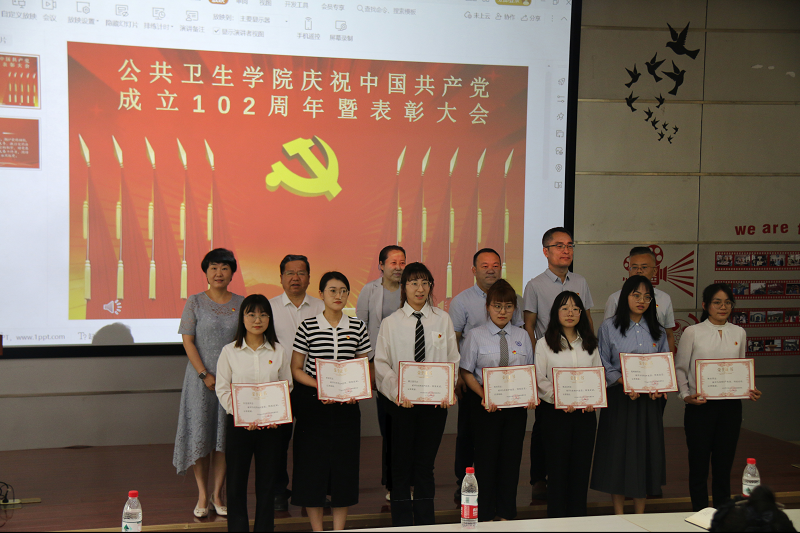 为庆祝中国共产党成立102周年,公共卫生学院党委于6月28日下午在城关校区东区勤博楼二楼报告厅举行“建党102周年暨表彰大会”。大会表彰了近年来在组织建设、工作业绩等方面表现突出的基层党组织、共产党员和党务工作者,进一步动员师生党员振奋精神、开拓创新、扎实工作,努力为建设高水平公共卫生学院而努力奋斗。全院师生党员及部分积极分子代表参加会议。院长王俊玲主持会议。