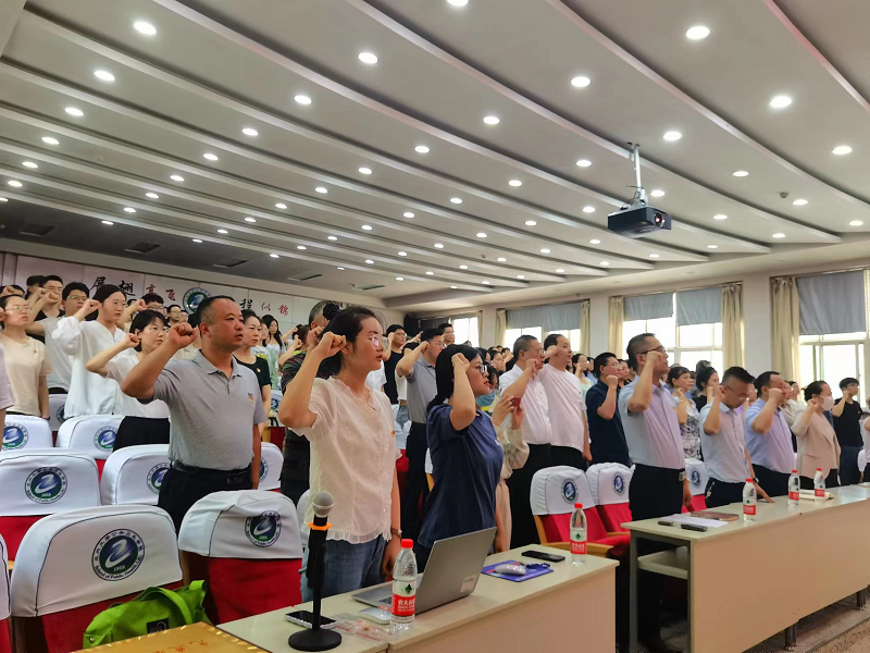 大会在庄严的国歌声中拉开帷幕。全体党员在王俊玲的带领下,面向党旗庄严宣誓,重温入党誓词。