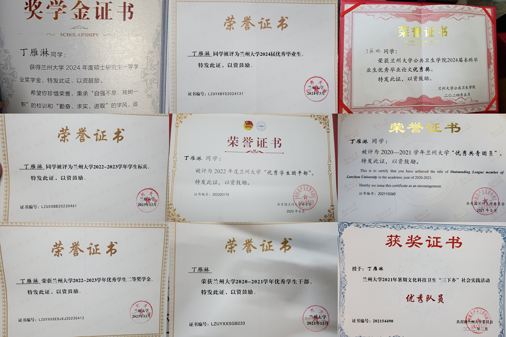 丁雁淋是公共卫生学院2024级硕士研究生,现担任公共卫生学院2023级本科生党支部副书记。本科期间,连续四年担任班级团支书,曾担任本科生第一党支部宣传委员,荣获兰州大学优秀毕业生、兰州大学优秀学生二等奖学金、兰州大学优秀学生团干部、兰州大学优秀共青团员、兰州大学学习标兵等多项荣誉。