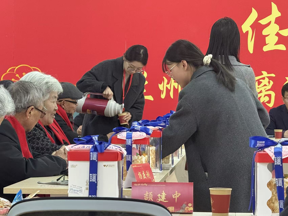 活动前夕,志愿者们便精心手写了祝寿贺卡,为老同志们送上真挚的祝福。祝寿会当天,志愿者们活跃在会场各个角落,引导老同志入场、协助分发礼物、维持现场秩序,保障了活动的顺利进行。
