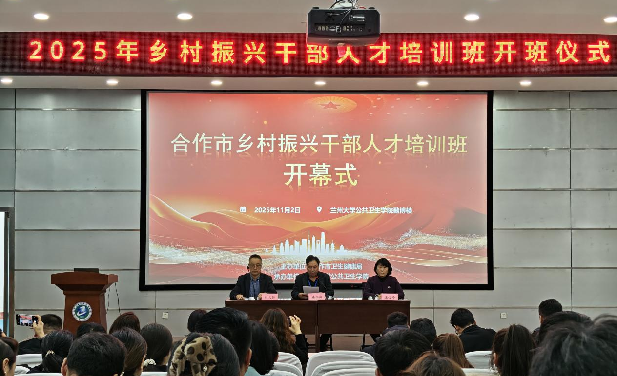 2025年11月3日,由合作市卫健局主办、兰州大学公共卫生学院承办的乡村振兴干部人才培训班在勤博楼二楼报告厅顺利开班。合作市卫生健康局局长桑永清,公共卫生学院院长王俊玲,合作市各级卫生健康机构的63名学员参加开班式。