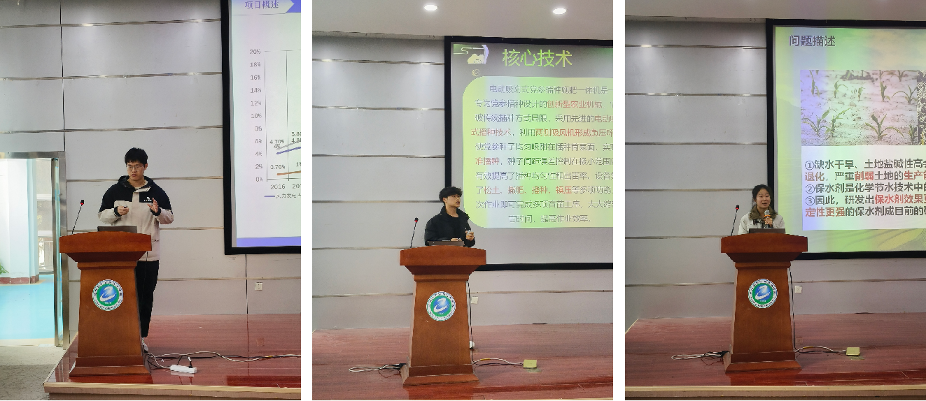 在项目展示环节,三位团队主讲人围绕项目背景、核心技术、创新路径与成果转化等方面展开系统阐述,生动呈现了TRIZ理论在不同领域中的实际应用。其中,《基于TRIZ理论的双轴追踪式风光互补智能供电系统》团队现场展示了实物模型,以更加直观的方式加深了同学们对项目的理解。
