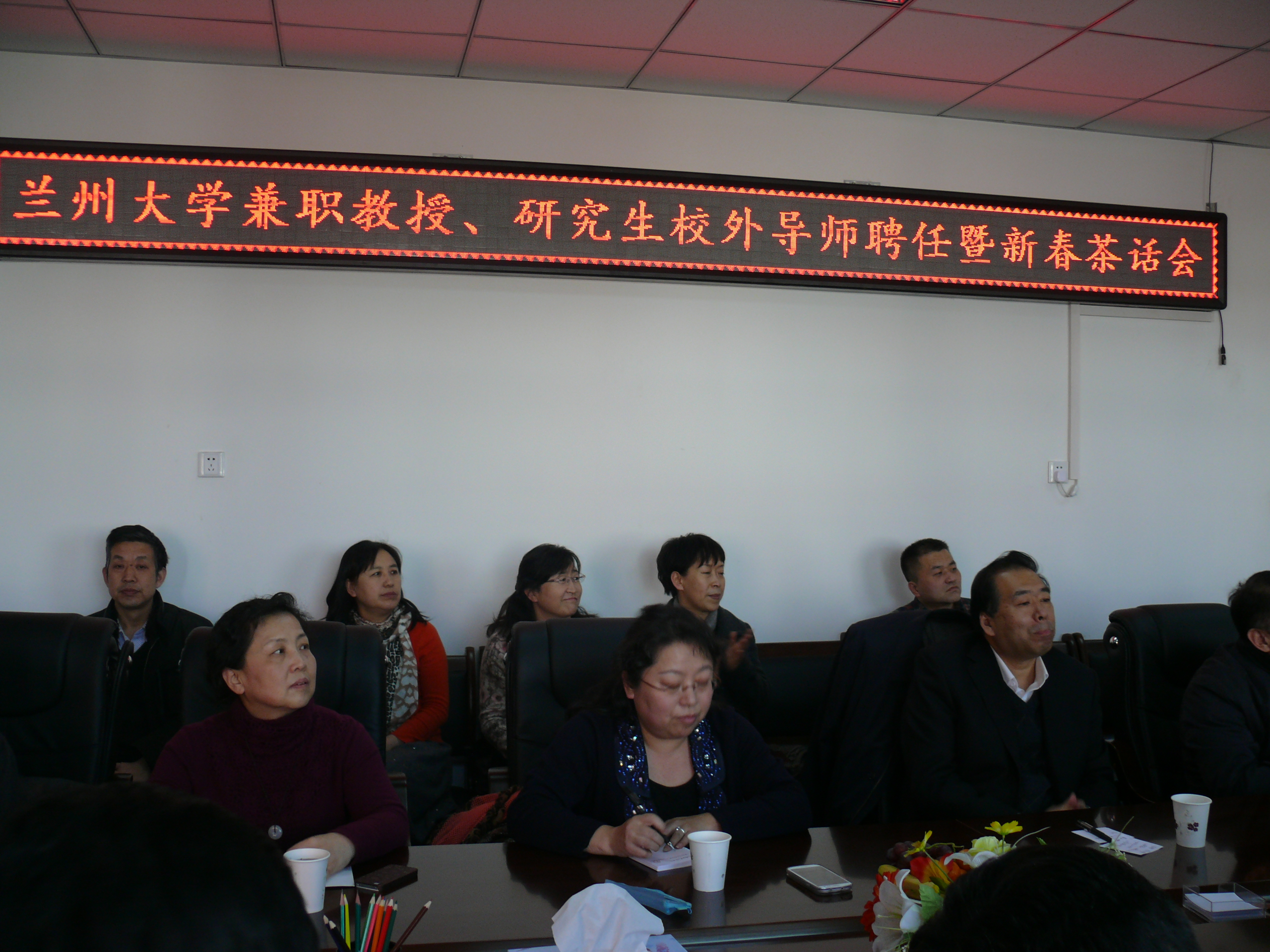 2014年1月17日下午14:30,公共卫生学院在学院四楼会议室举行了兰州大学兼职教授暨专业学位硕士研究生校外导师聘任仪式。甘肃省疾病预防控制中心、甘肃省健教所、甘肃省卫生厅等相关单位的21位领导和专家、学院研究生导师参加了会议。学院党委书记胡万军主持会议。