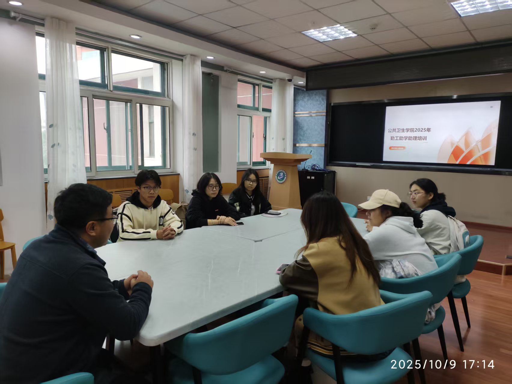 10 月 9 日,公共卫生学院于勤博楼 4008 会议室、榆中校区办公室顺利举办 2025 年勤工助学岗位培训,学院党委副书记马恩和、辅导员张乐为两校区勤工助学学生开展专项培训。